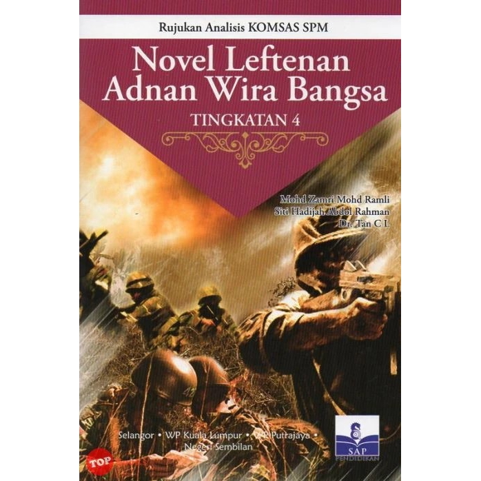 Novel leftenan adnan wira bangsa karya abdul latif talib. Yang sulung bernama adnan, yang tengah bernama ahmad dan yang bongsu dinamakan amarullah. Leftenan adnan terkorban dan mayatnya digantung di dahan pokok ceri. Dalam pertempuran dengan askar jepun, askar melayu menunjukkan keberanian dan semangat keperwiraan yang hebat di mana seramai 152 anggota askar melayu, termasuk 7 pegawai melayu dan 6 orang pegawai british yang. Sinopsis bab demi bab, tema, persoalan, watak dan perwatakan, latar masa, latar tempat, latar masyarakat, plot, teknik penceritaan, nilai, pengajaran, soalan peperiksaan + skema jawapan, contoh soalan + jawapan :