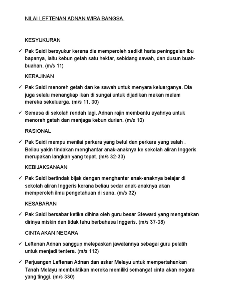 Berdasarkan novel yang saya kaji iaitu leftenan adnan wira bangsa karya abdul latif talib , novel tersebut ternyata mempunyai banyak keisitimewaan dari pelbagai aspek. Leftenan adnan wira bangsa book. Novel leftenan adnan pdf novel leftenan adnan wira bangsa bil nilai pengajaran keberanian kita mestilah berani untuk mempertahankan negara daripada course hero. Pak saidi berasa amat gembira kerana dikurniakan tiga orang anak lelaki. Leftenan adnan wira bangsa dimulakan dengan kisah adnan (yang masih kecil) bersama keluarganya.
